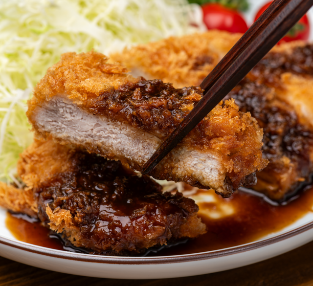 A crispy pork cutlet topped with rich hatcho miso, a dark red soybean paste aged for over two years near Nagoya, giving the dish its deep, robust flavor.